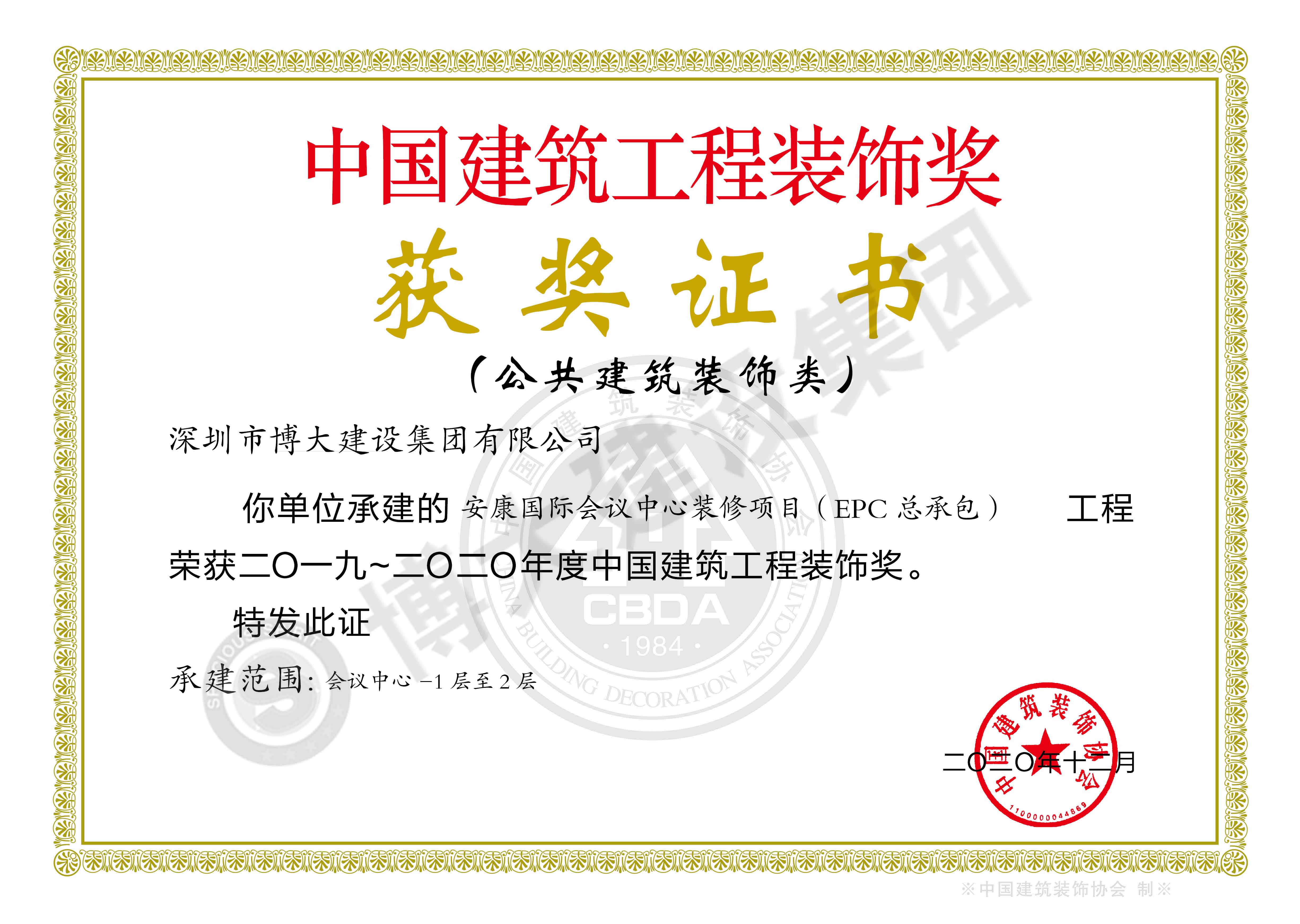中國建筑工程裝飾獎(安康國際會議中心裝飾施工)