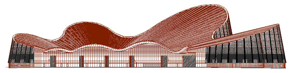 南通大劇院造型獨(dú)特,形似鋼琴、狀如紙鳶。幕墻建筑高度57m,分為玻璃幕墻系統(tǒng)、開放式石材幕墻系統(tǒng)、開縫鋁板幕墻系統(tǒng)、門窗系統(tǒng)、異形屋面系統(tǒng)等,幕墻及屋面總面積達(dá)到8.5萬㎡。