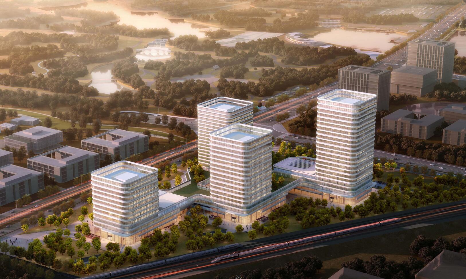 項目位于廣州市天河區國際金融城起步區,總建筑面積超過10萬㎡,建筑高度138.15m。博大負責AT090958號、AT090960號兩個地塊(上圖中間2棟)的幕墻工程,合同總額超過1.3億。