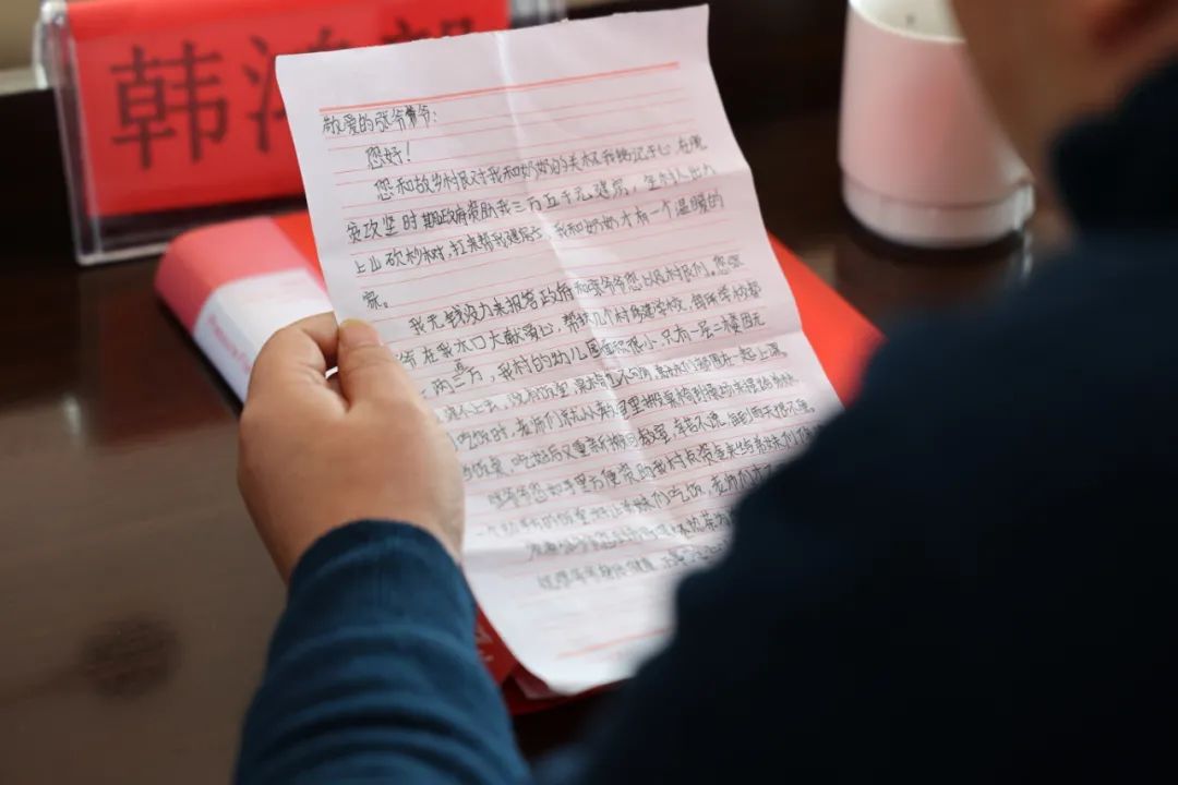 在捐贈現(xiàn)場,一位82歲的侗族殘疾老奶奶帶來了相依為命的孫子寫的一封感謝信,黎平縣政協(xié)副主席韓鴻毅親自朗讀,為大家分享這個小學生的感謝信,童言童語情真意切,感人至深。
